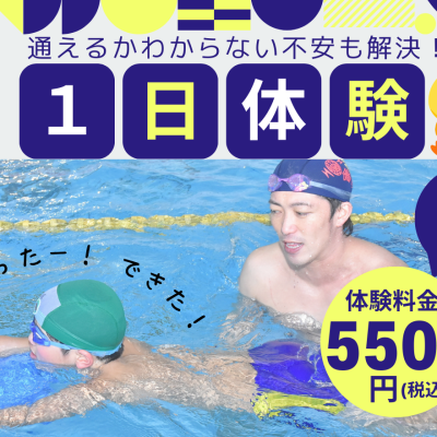 1日レッスン体験は通常レッスンクラスで一緒に練習します。泳げる子や水が怖い子の段階に分けて少人数グループ制なのでお子さまに合わせて安心してご参加いただけます。
