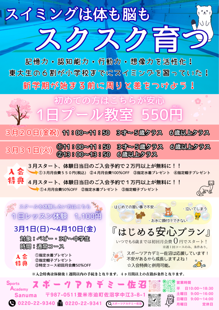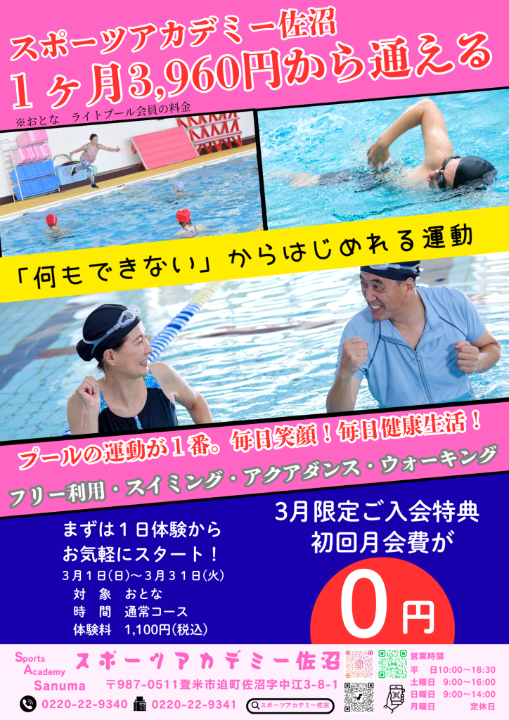 [1日レッスン体験]お申込みはコチラ⇒https://scr.buscatch.net/application/?f=spoaca-sanuma&i=123803