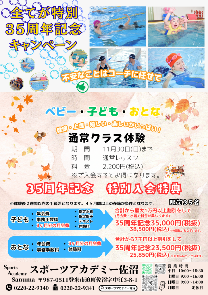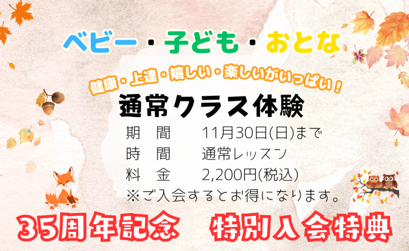 11月は35周年記念としてご入会時に特別特典でお手続きいただけます。特典有効期限は11月30日(日)まで。お待ちしております。